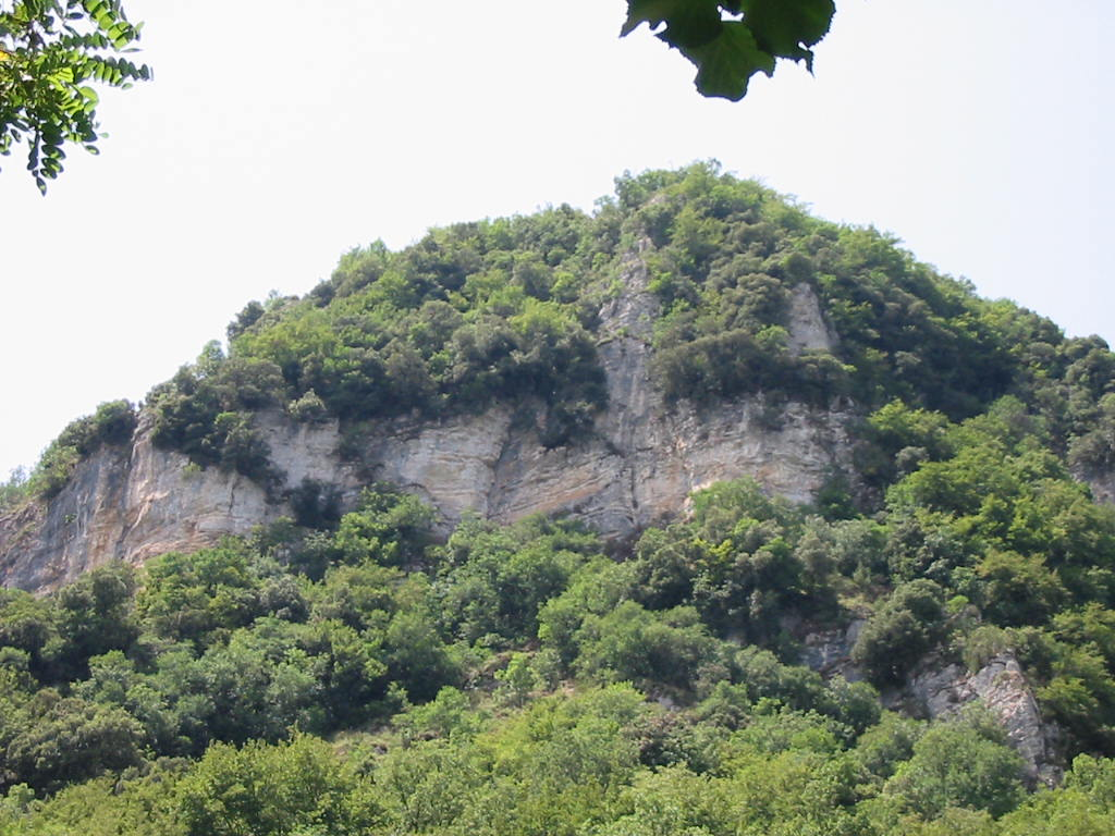 La rupe che sovrasta Greggio Alta; da notare la vegetazione che mina la stabilità della parete rocciosa - 01/02/2002